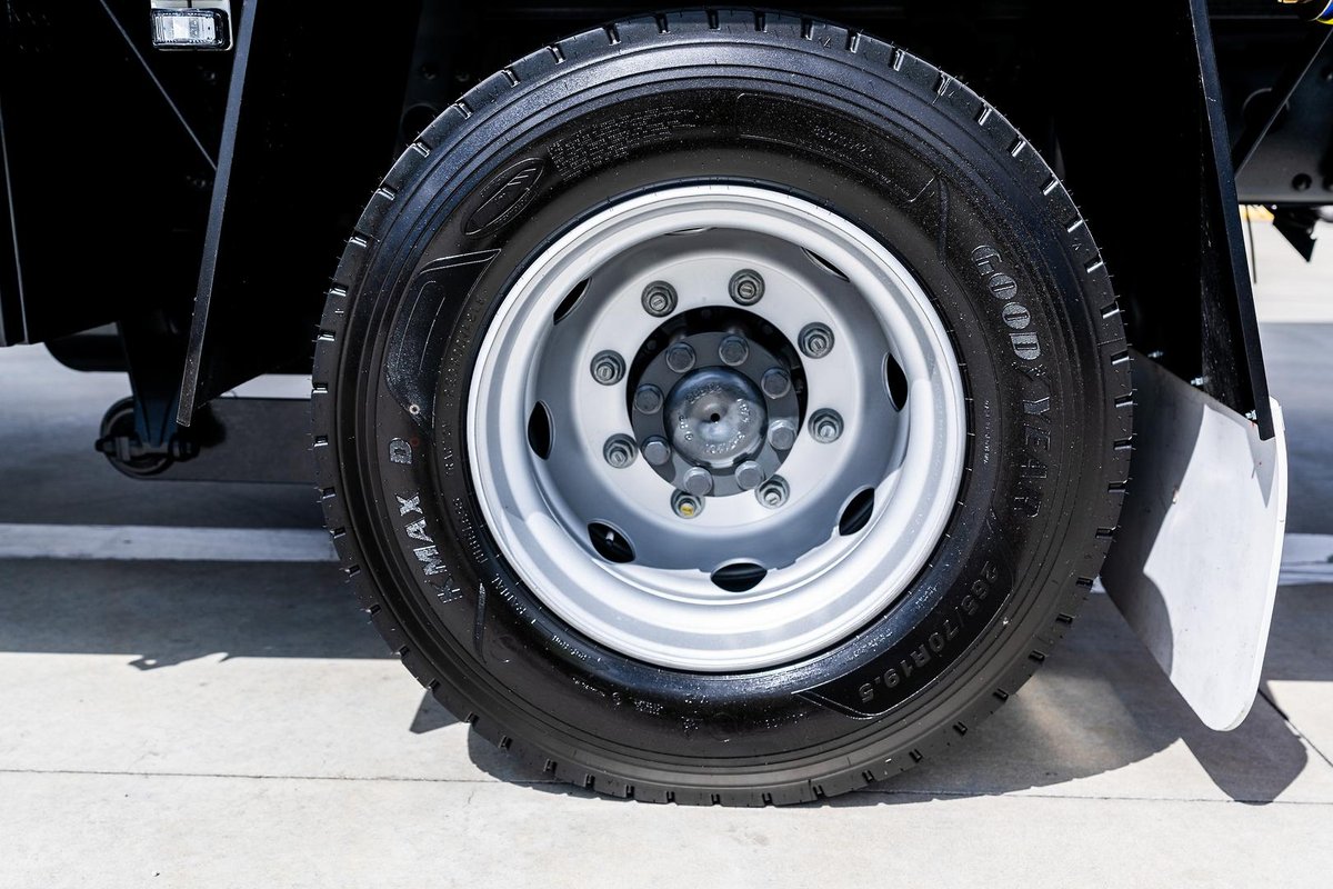 Steel disc rims, 19.5" x 6.75" 8-stud with low-profile Goodyear 265/70R19.5 tyres